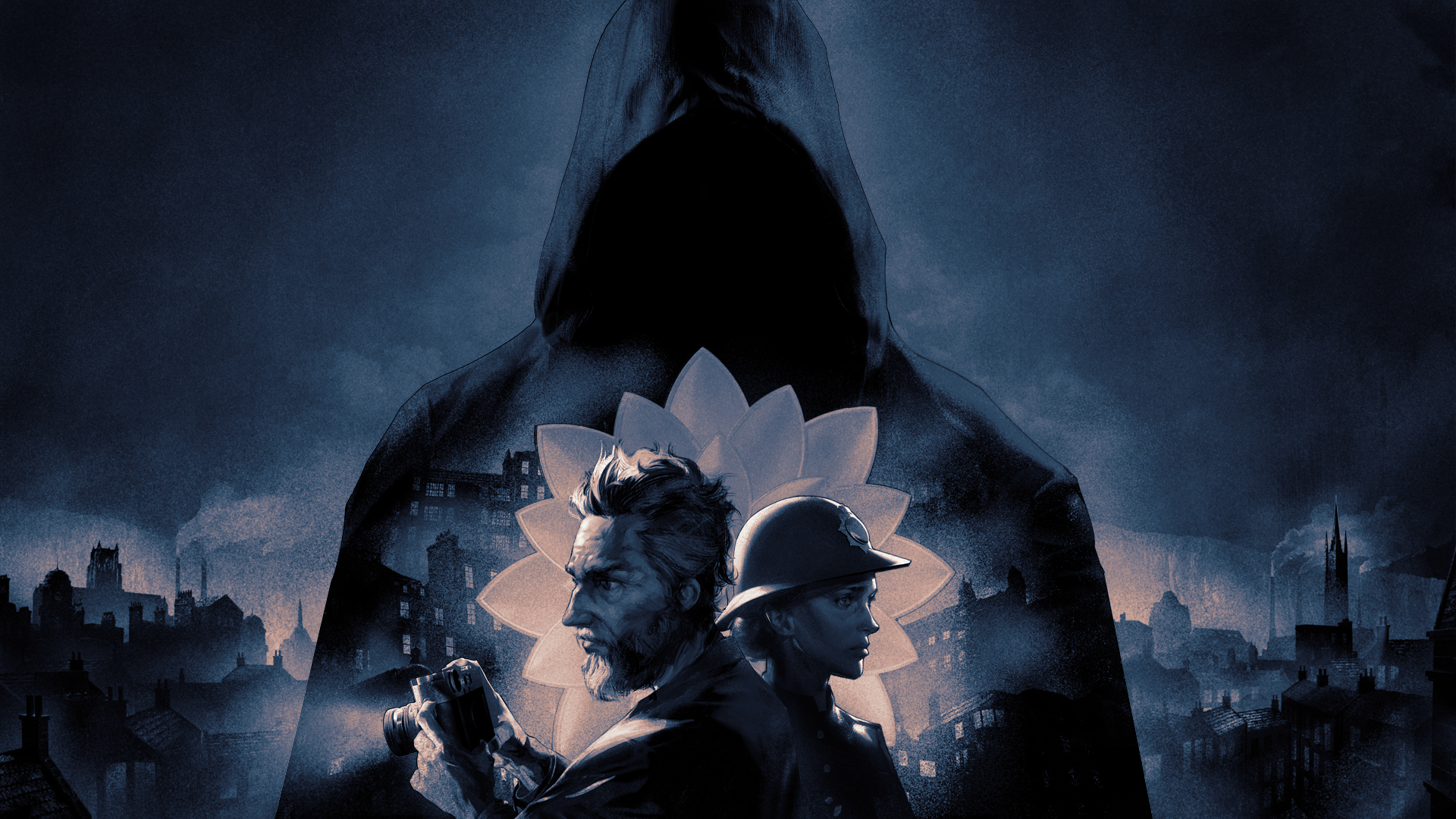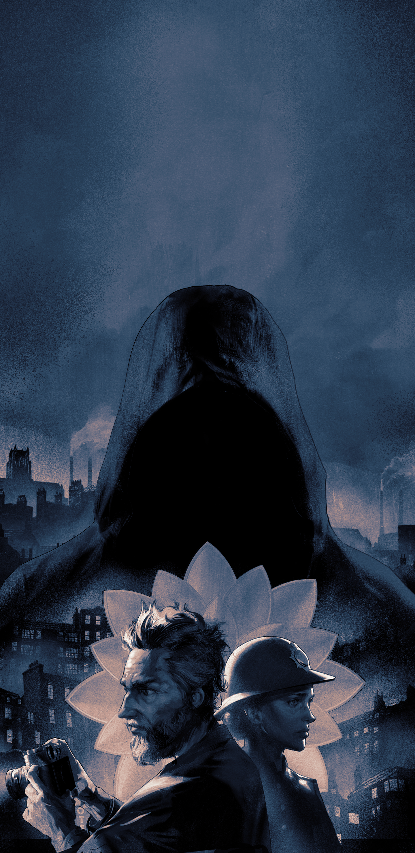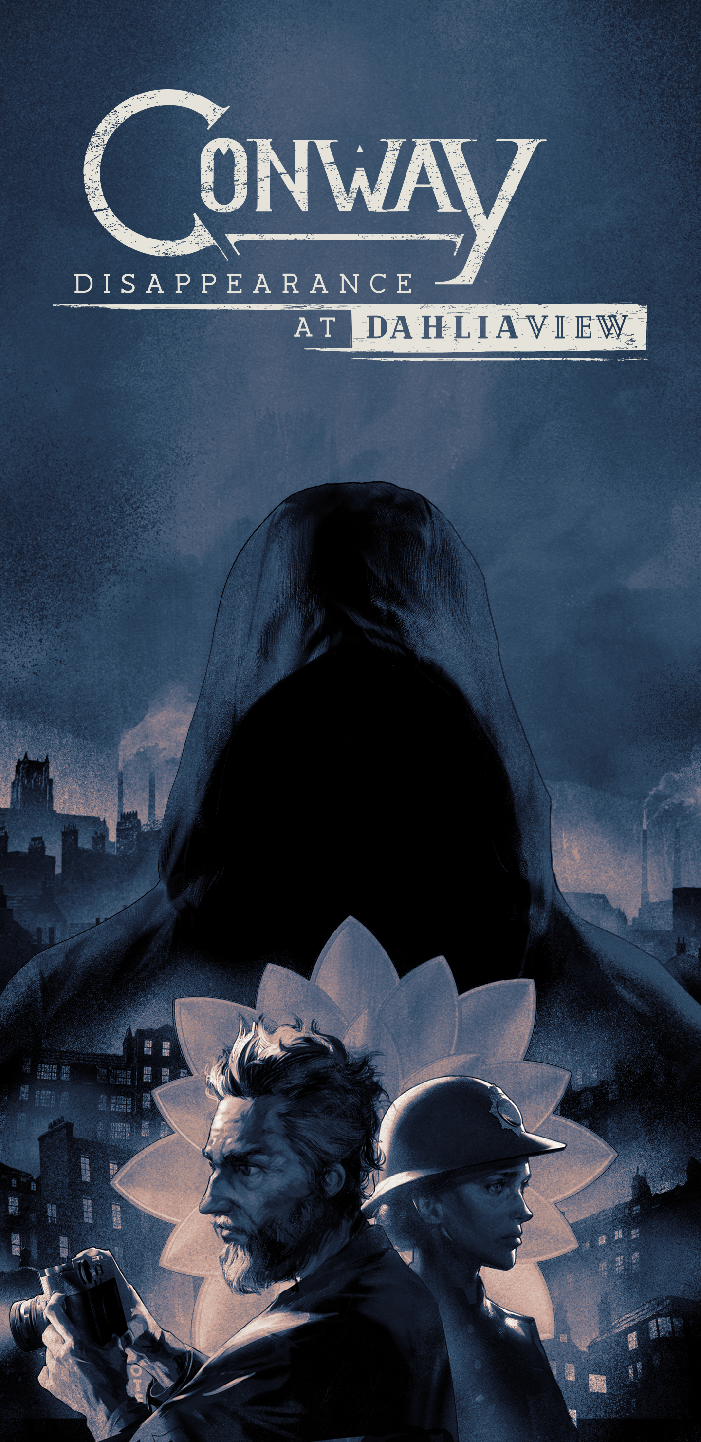 This is a download of the key art we’ve created for the game. It was designed around Robert & Catherine Conway with elements of the brooch and the perpetrator in the background. The surrounding builds are the town of Riverport where the game is based.